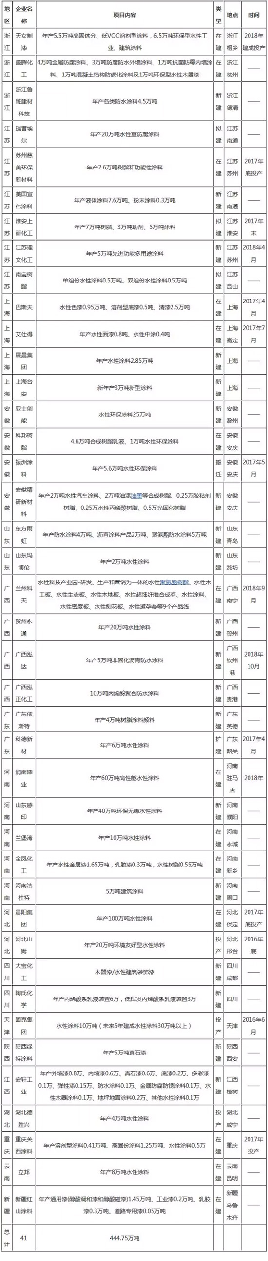 涂料人不得不看的新增產(chǎn)能計(jì)劃表